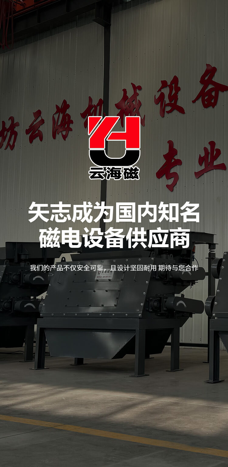 濰坊云海機械設(shè)備有限公司始建于2009年,是生產(chǎn)磁電機械設(shè)備的廠家。系生產(chǎn)建材、冶金、礦山、化工等行業(yè)微機自動化、檢測、控制專用設(shè)備的公司。主要產(chǎn)品工業(yè)自動化配料系統(tǒng)、電磁永磁除鐵器、永磁磁選機、電磁振動給料機、皮帶螺旋輸送機、電磁滾筒、破碎機、包裝機 、除塵器等系列產(chǎn)品。